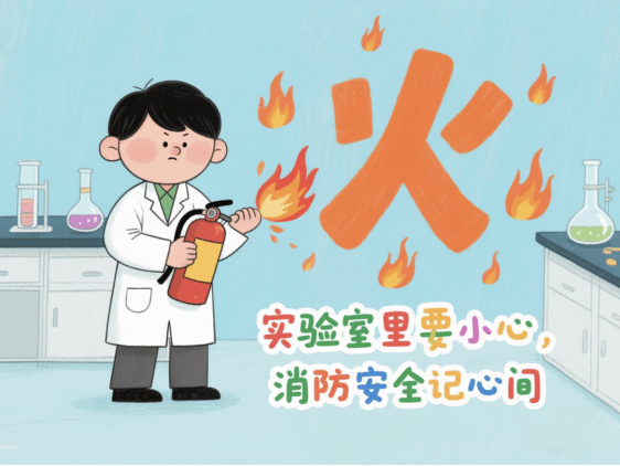 掌握应急技能:熟悉实验室逃生路线、灭火器和灭火毯位置,学会应急处理方法——油类或化学品起火切勿用水扑救,应立即用专用灭火器或灭火毯覆盖。