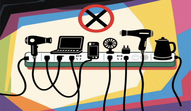 严禁违规用电:大功率电器(电煮锅、电热毯、卷发棒等)易引发电路过载,劣质插线板、私拉乱接电线更是隐形杀手,一律禁止使用;电动自行车及电池严禁带入宿舍充电。