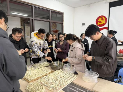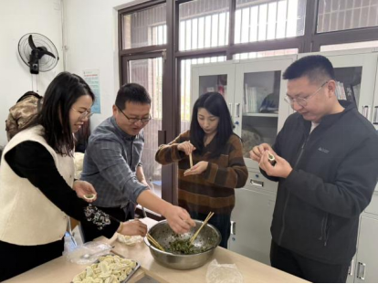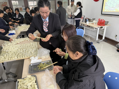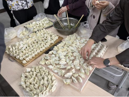 活动现场,师生代表和“楼妈妈”们纷纷动手,揉面、擀皮、包馅,动作娴熟利落。大家围坐一团,各逞其能,包出月牙形、元宝形、福饺等各式饺子。师生一边包饺子,一边畅谈学习生活中的感悟,分享日常相处的暖心点滴。