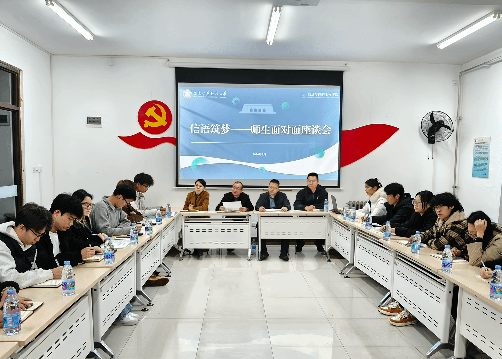 为深化“一站式”学生社区建设,畅通师生沟通交流渠道,3月17日,信息与控制工程学院在紫阁一栋“一站式”学生社区召开“信语筑梦”师生面对面座谈会。学院党委书记于军琪,学院党委副书记、副院长米泽龙,学院副处级辅导员、学生工作办公室主任顾欣,学院团委书记杨晓寒和学院各年级学生代表参加座谈会。