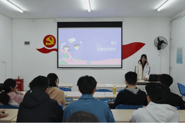 分享会上,姚艺欣从竞赛题型解析、备考时间规划、答题技巧总结三大核心板块展开分享。她结合历年大英赛真题案例,细致剖析了听力、阅读、写作、翻译四大题型的特点与难点,并针对备赛规划,给出了分阶段备考方案。通过本次经验分享,同学们进一步理清了大英赛备考思路,有效缓解了备考迷茫,也增强了冲刺竞赛的信心与决心。