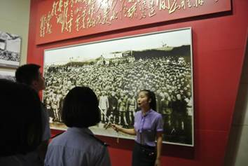 在讲解员的带领下,队员们跨过历史的长河,看到从西北革命根据地的创建再到新中国的雏形——陕甘宁边区形成的过程;感受到从八载干戈仗延安到自力更生奏凯歌的艰辛不易;体会到当初为抗日统一民族战线的艰难再到后来转战陕北,夺取胜利的喜悦。看到革命先辈们那破旧单薄的无法御寒的衣物;那万般无奈下拿来果腹剩下的半根皮带;那仅仅靠着小米加步枪完成的一项项壮举。队员们的心里都有了些许的酸涩。在回到展览大厅时,队员们面对革命先辈们的铜像,都献上了一束花并深深地鞠了一躬,希望将自己内心的敬佩可以通过这束花传递给革命先辈们,也希望自己以后可以为祖国美好未来献上微薄的一份力量。