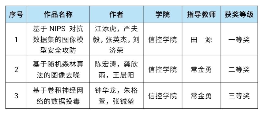 8月23日-25日,首届全国人工智能安全竞赛决赛在北京邮电大学沙河校区举行。我校信息与控制工程学院推荐的3支队伍成功晋级全国总决赛,分别斩获作品赛一等奖、二等奖和三等奖。