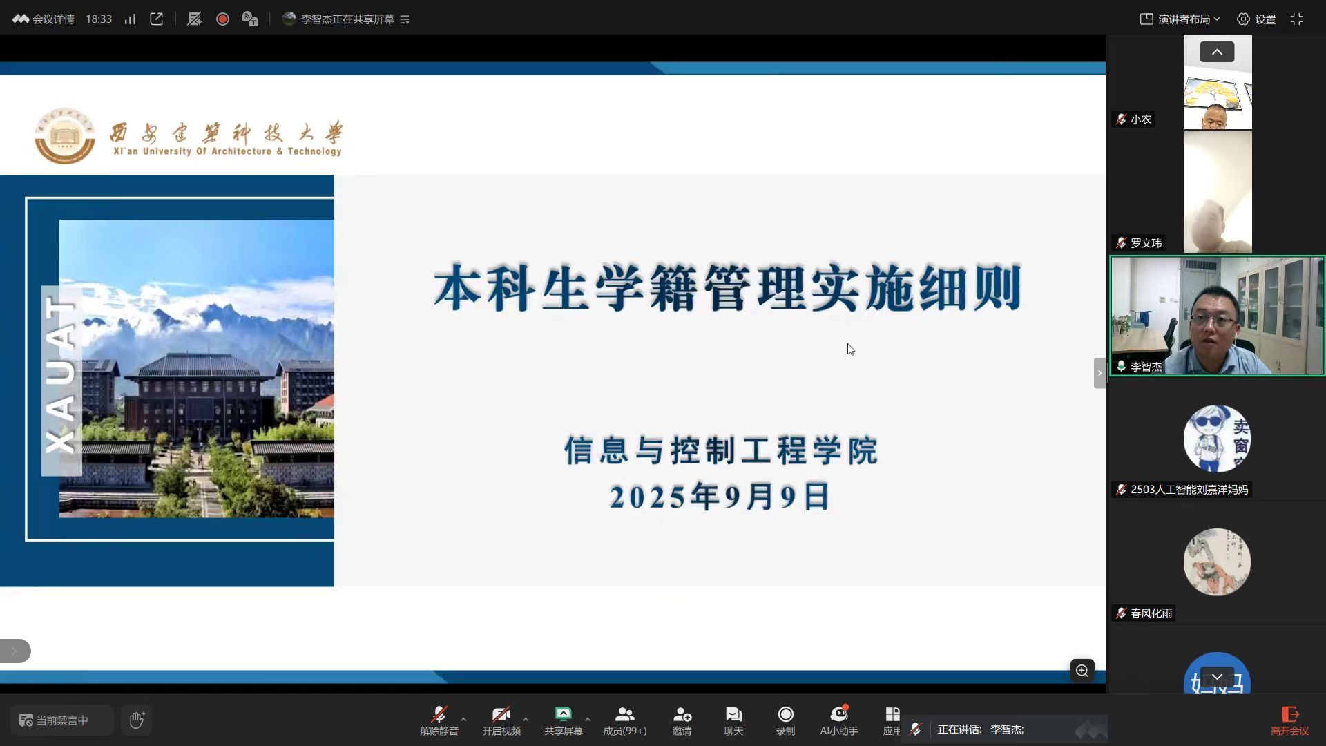 为全面落实立德树人根本任务,深化家校协同育人机制,进一步凝聚育人合力,助力新生尽快适应大学生活,开启成长新征程。我院于9月9日线上召开2025级本科生新生家长会。学院党委副书记、副院长米泽龙,副院长李智杰,学校心理素质拓展与咨询中心王平老师出席会议,2025级本科生辅导员杜瑶主持,近500 名新生家长云端参会。