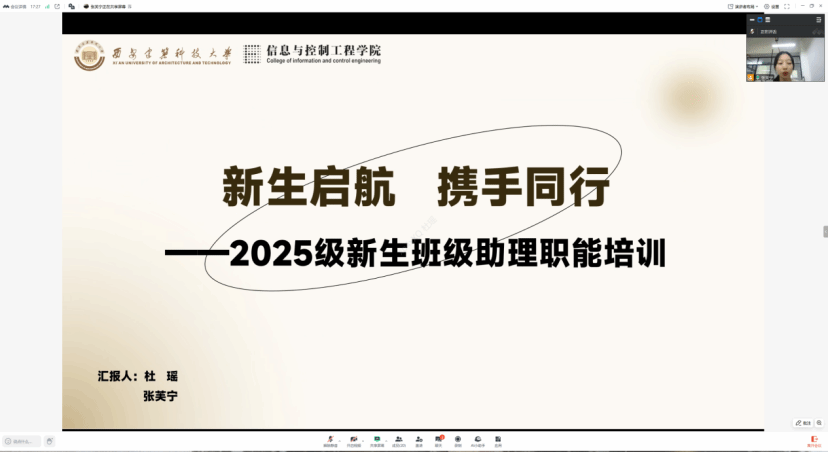 为充分发挥学生朋辈引领作用,提高班级助理工作能力,切实保障2025级新生快速融入校园生活。信控学院于8月21日17:00线上召开2025级班级助理职能培训。本次活动由2025级本科生辅导员杜瑶、张芙宁主持,全体新生班级助理参会。