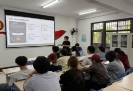 贾利扬结合自身参赛经历,以“挑战杯”赛事为例,围绕选题方向、团队组建、申报书撰写、路演答辩等核心内容展开细致讲解。他系统拆解了赛事体系、备赛策略及常见误区,并分享“一鱼多吃”的项目复用思路,为在场同学提供了切实可行的备赛指南。他结合自身备赛与参赛经历谈到,优质项目要紧密结合信息类学科专业技术特点,紧盯社会发展与行业实际痛点,突出方案的可行性与应用价值,在反复打磨项目逻辑、完善技术路径、优化成果呈现中不断实现创新与突破。